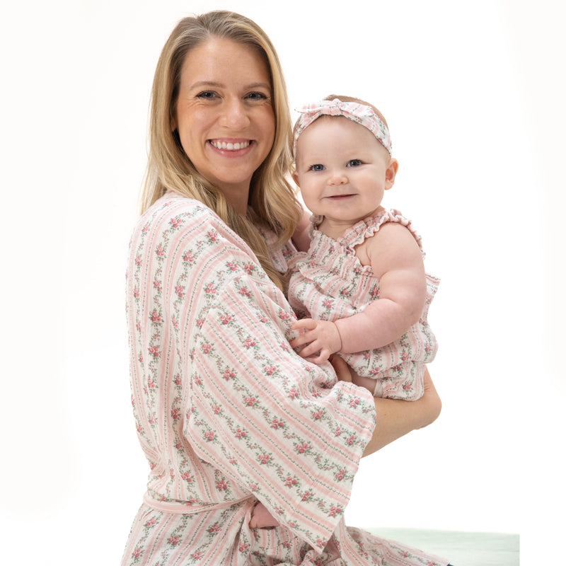 Winding Roses Stripe - Adult Kimono Mid Thigh Robe