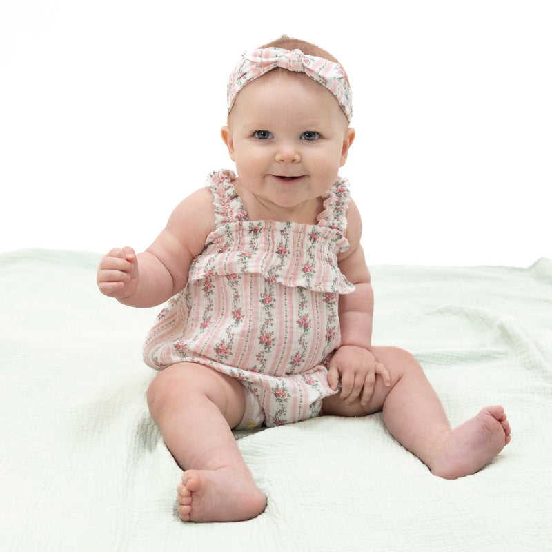 Winding Roses Stripe - Ruffly Strap Overall & Headband