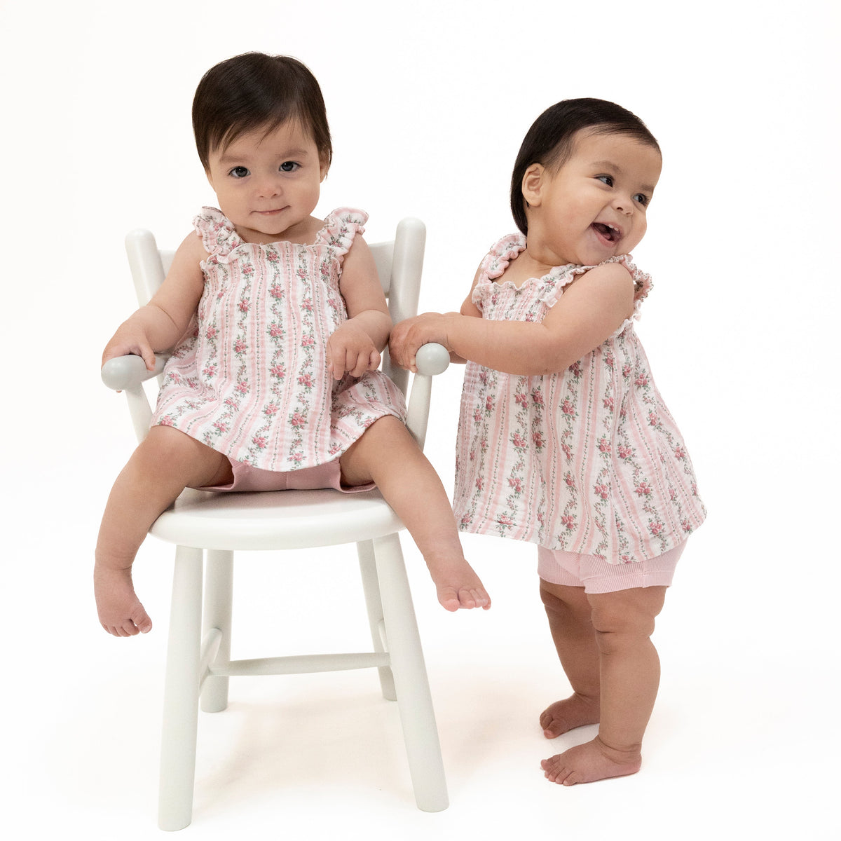 Winding Roses Stripe - Smocked Ruffle Sundress & Bloomer