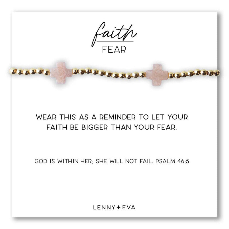 Faith Over Fear Cross Bracelet-3mm Sunstone