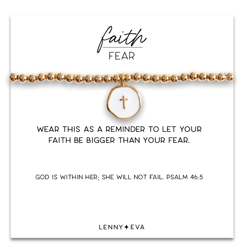 Faith Over Fear Cross Charm Bracelet-White Enamel 3mm