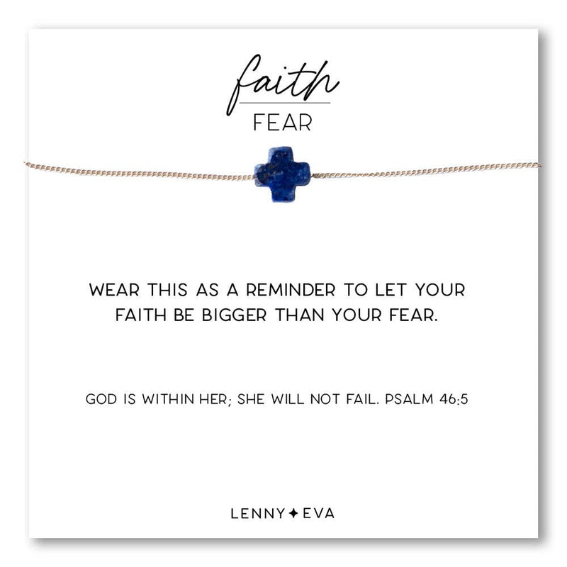 Faith Over Fear Gemstone Cross Bracelet-Lapis Lazuli Cross