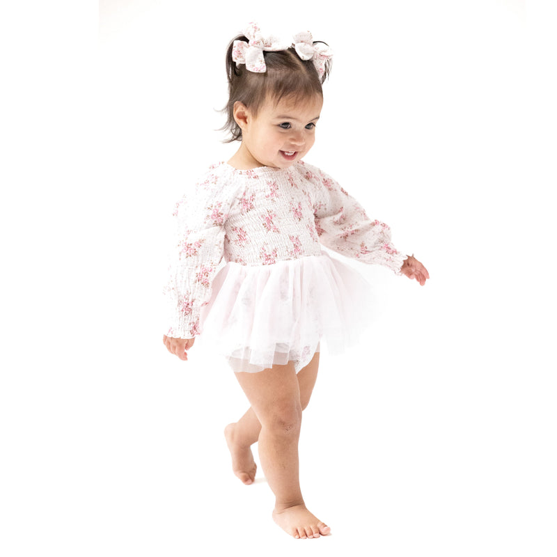 Belle Rosette Dot - Long Sleeve Smocked Bubble with Tutu