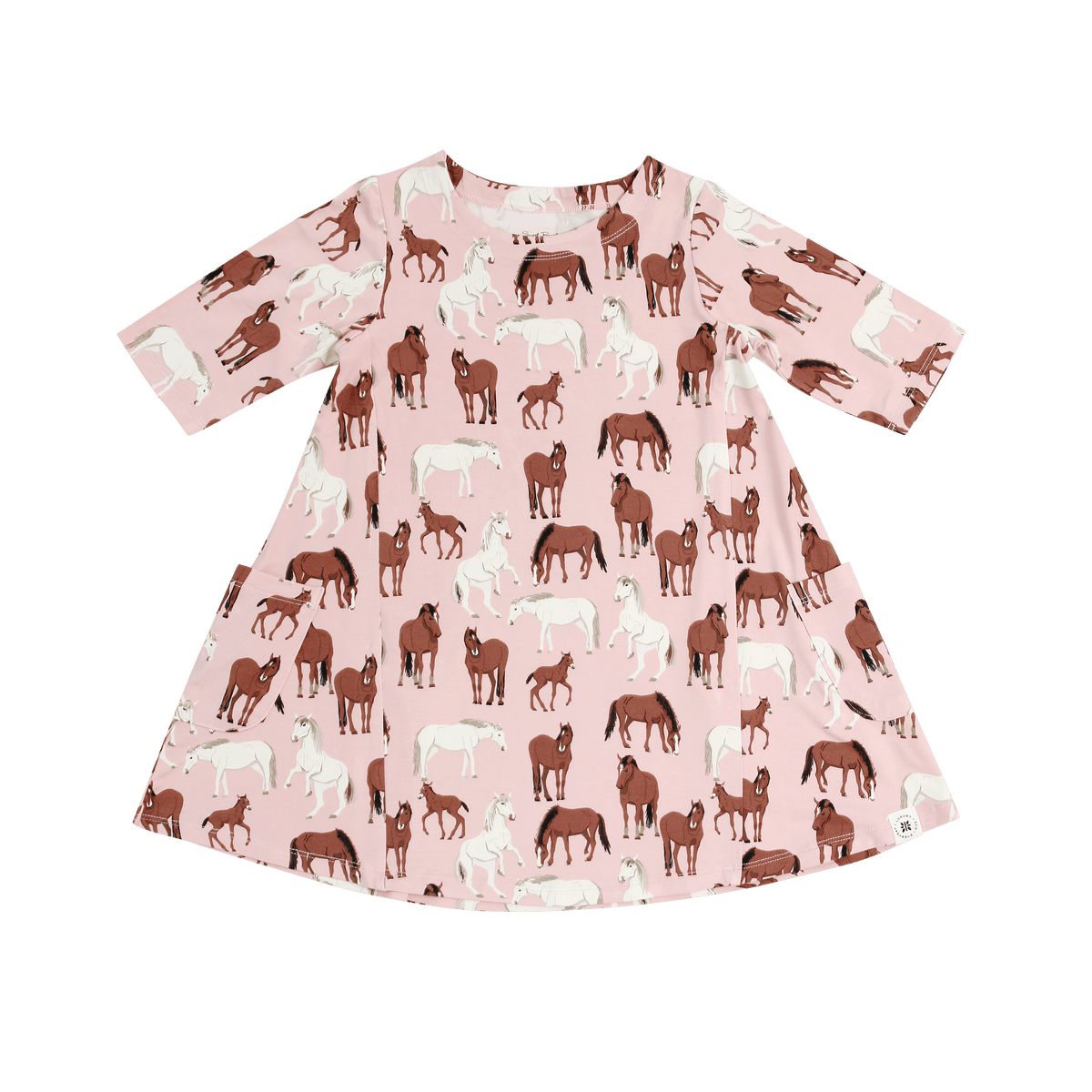 A pair of earrings featuring a pattern of wild horses on a cork jasmines background, attached to a wooden backing card with the brand name 'DOOHICKIES' printed at the top.