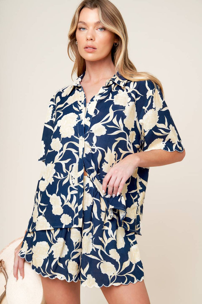 SLOW MORNINGS NAVY WOVEN TOP AND SHORTS SET