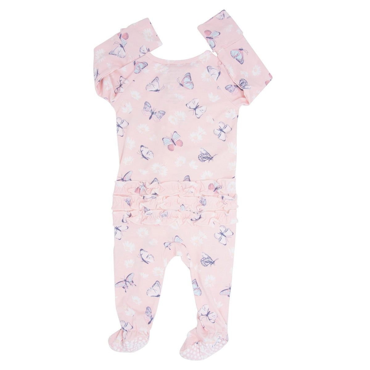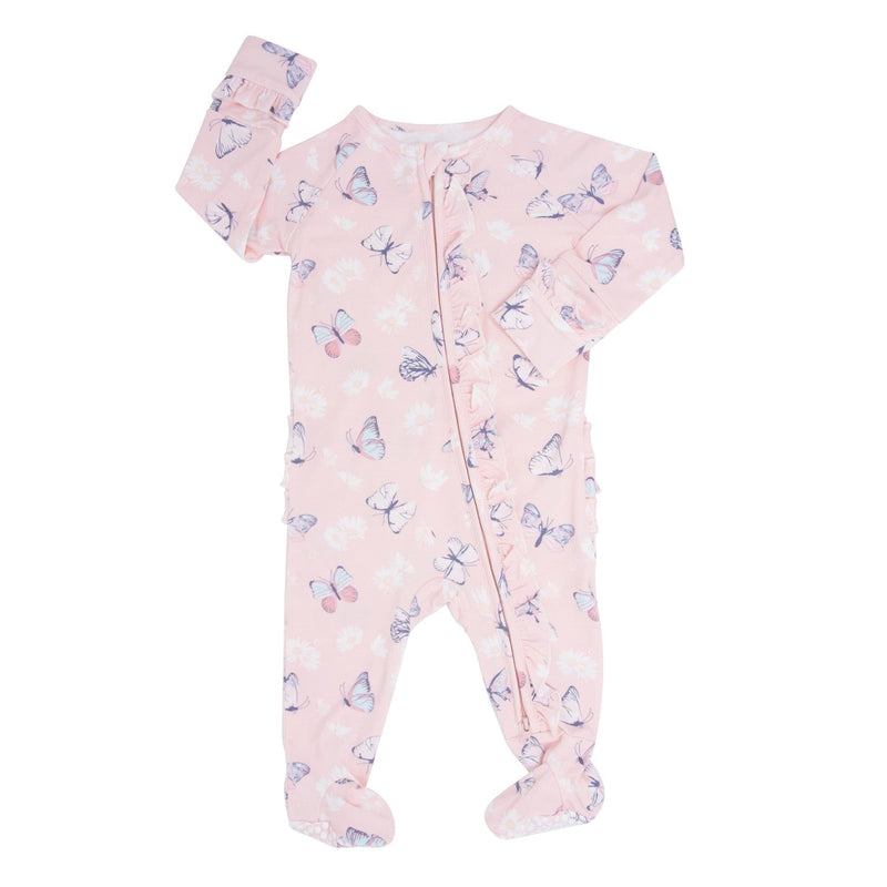 Pink Butterfly Daisy Bamboo Ruffle Footie