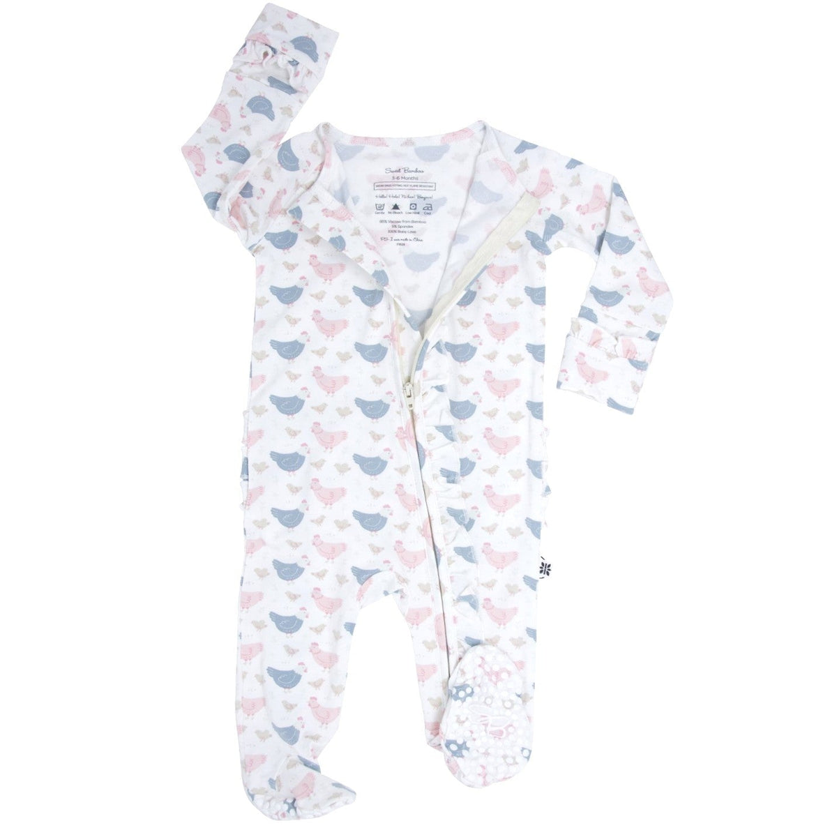 Pink Farm Hens Bamboo Zipper Footie