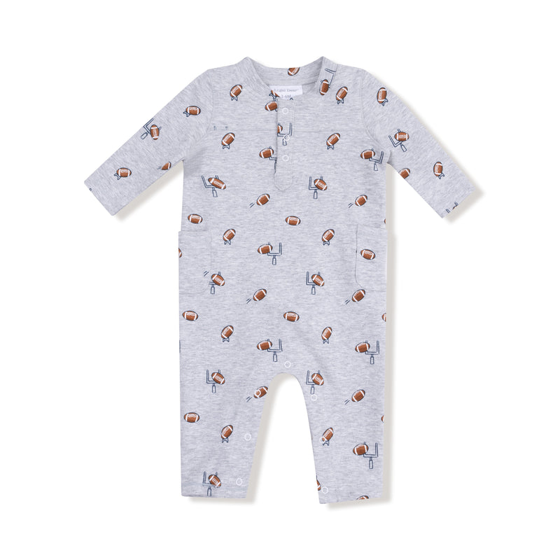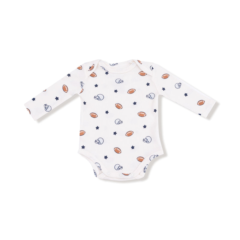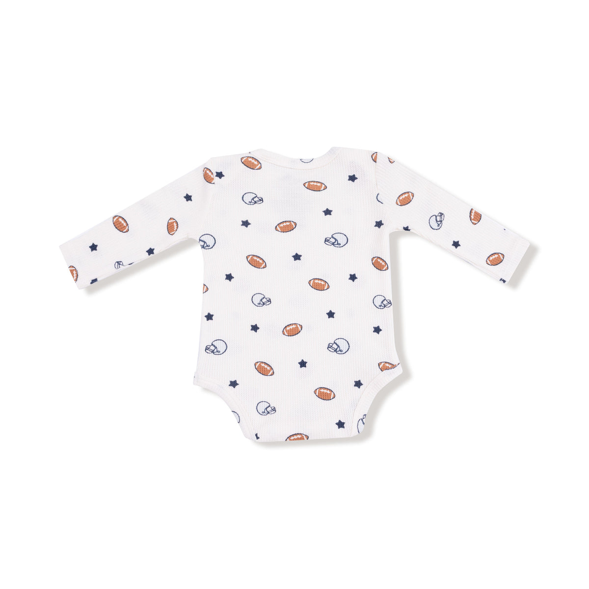 Footballs and Stars - Long Sleeve Raglan Henley Romper and Kanga Pocket