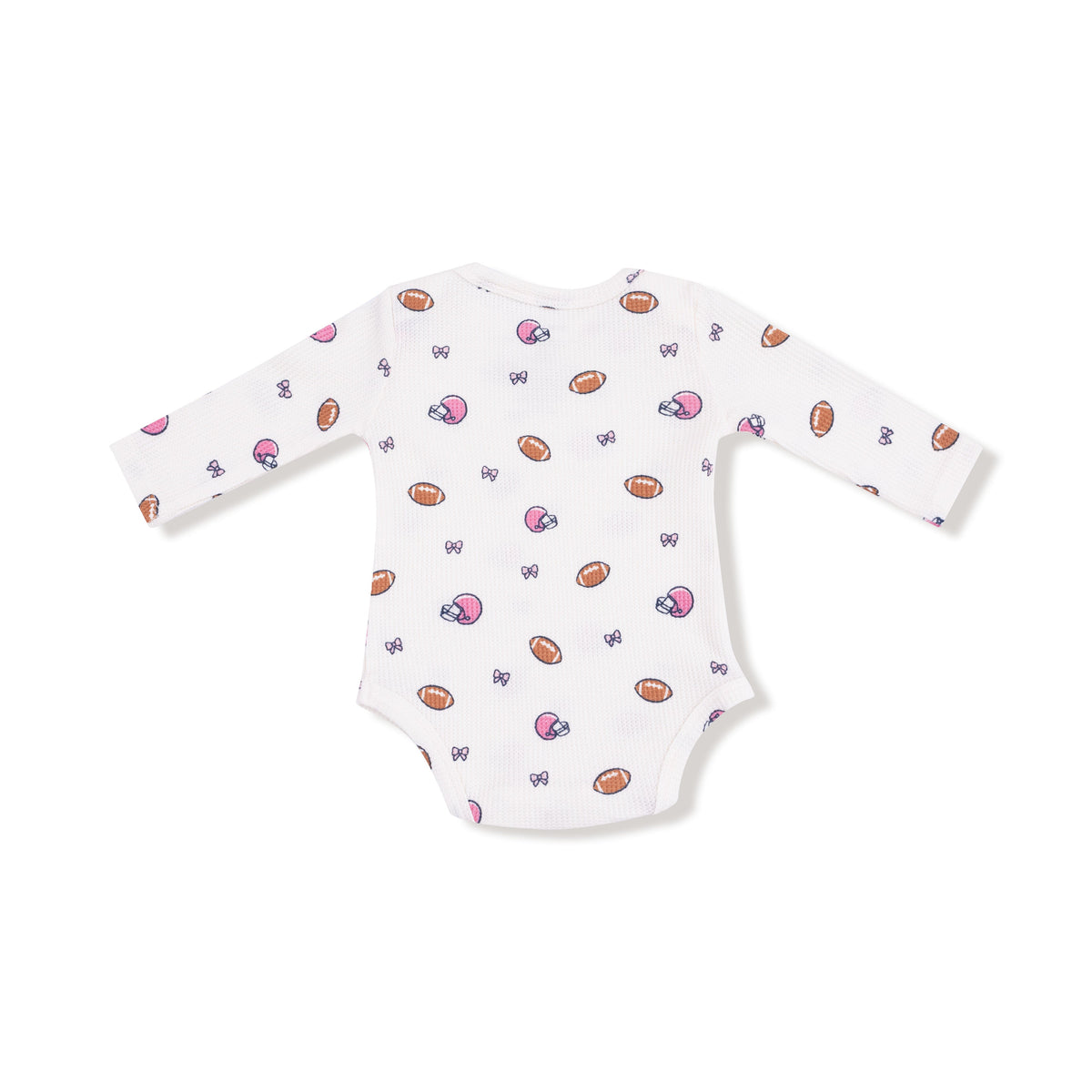 Footballs and Bows - 2 Way Zipper Ruffle Back Footie