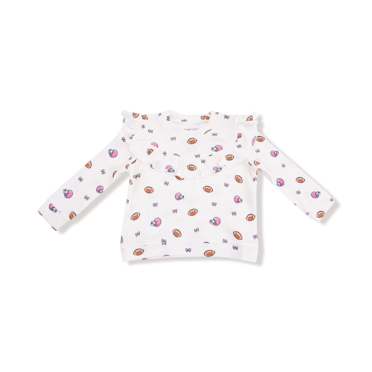 Footballs and Bows - Ruffle Waffle Top and Waffle Flare Pant