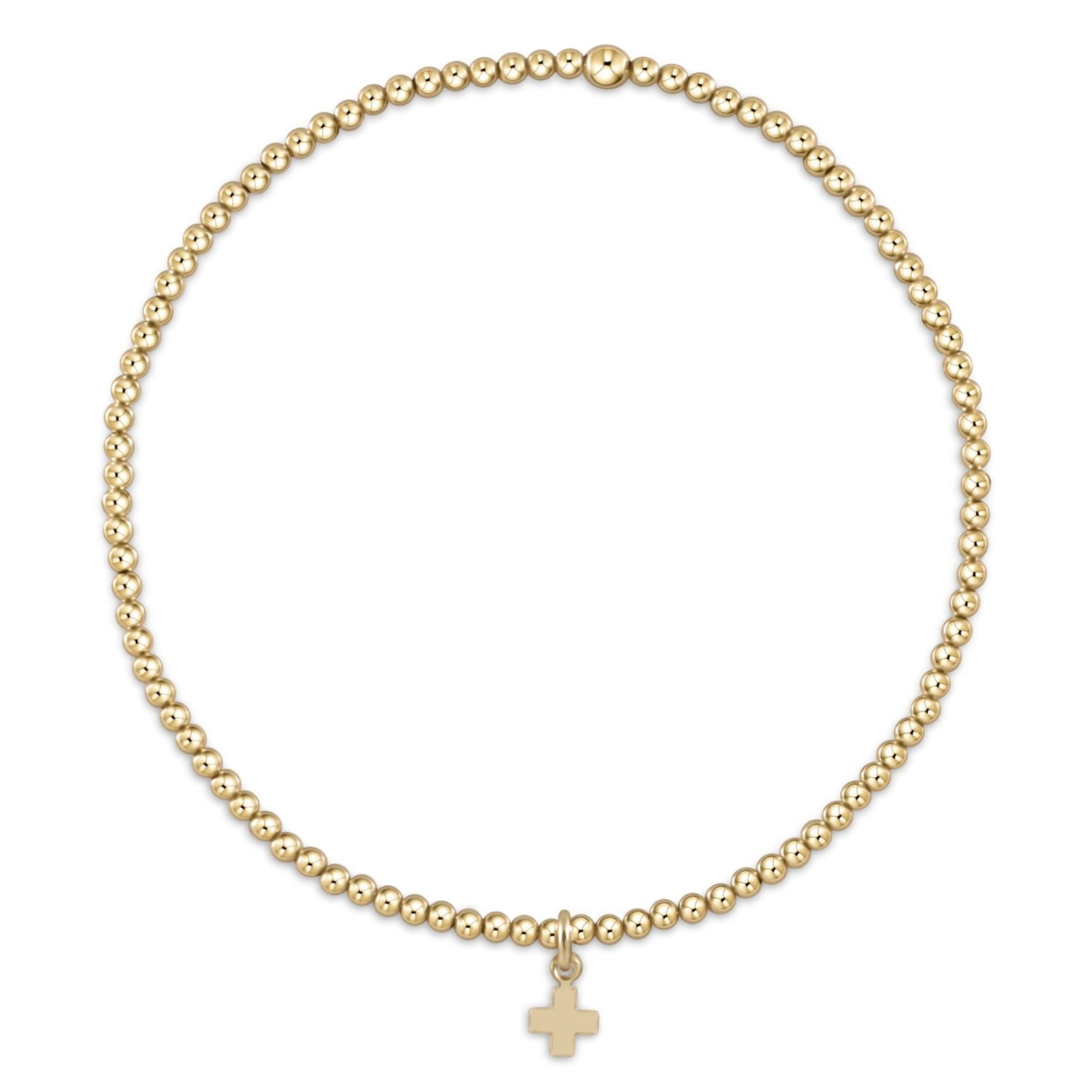 classic gold 2mm bead bracelet – signature cross small gold charm – 14kt gold-filled, stackable stretch