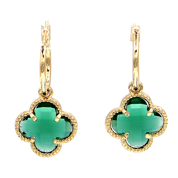 Round Hoop Clover Gem Earrings – Huggie Hoops with Clover Dangle