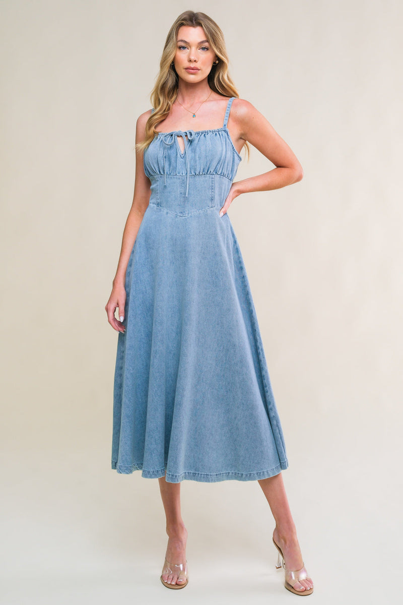 HEARTFELT MOMENT DENIM MIDI DRESS