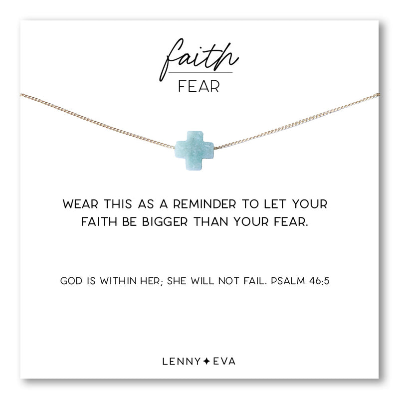 Faith Over Fear Gemstone Cross Bracelet-Amazonite