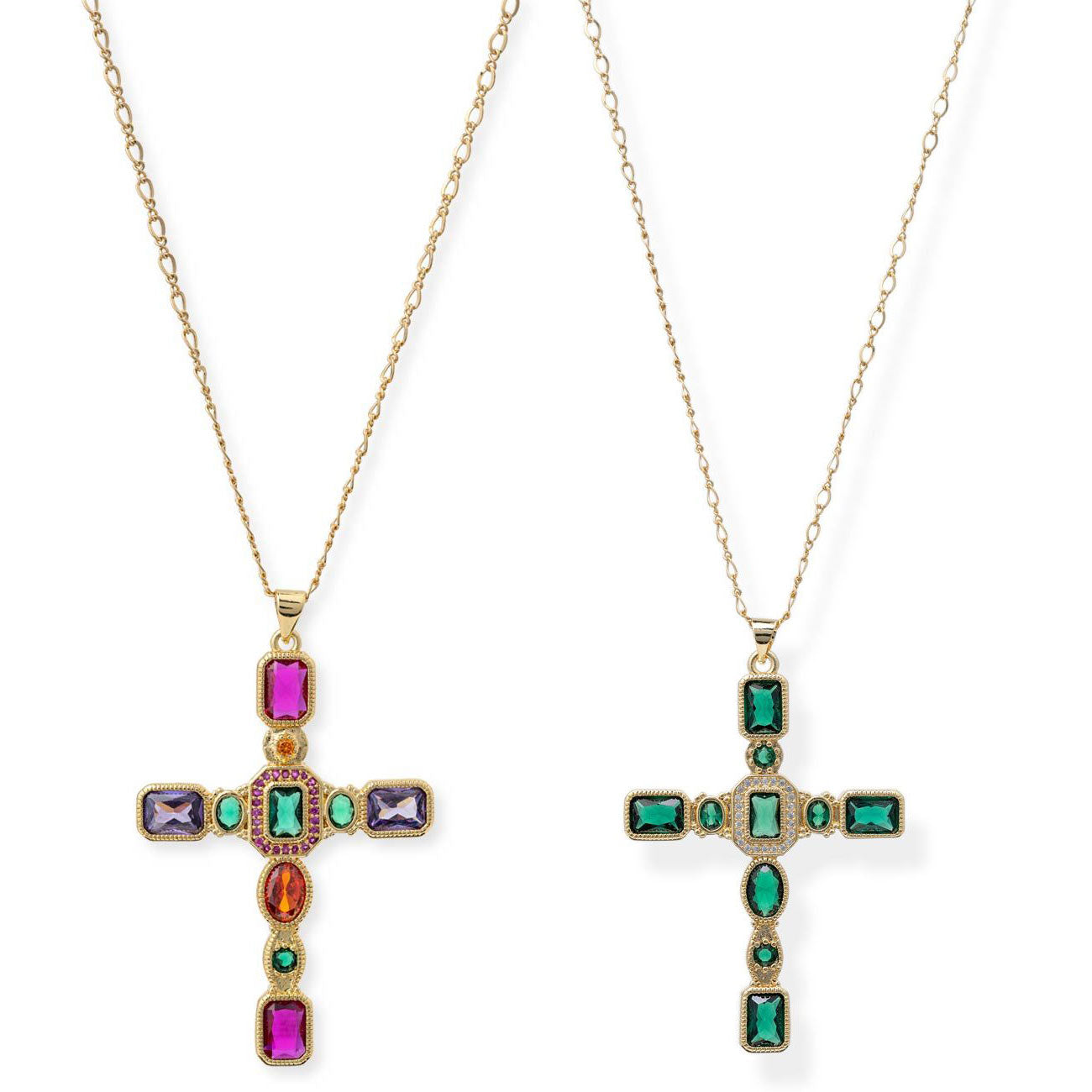 Our stylish Genesis Cross Necklace is made with figaro chain and a beautiful CZ cross. This luxe modern statement piece adds a touch of sophistication and peace to any outfit. Its durable and water resistant plating ensures long-lasting wear. 2 colors available