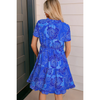 Lola-Blue Floral Ruffled Hem V Neck Short Sleeve Flowy Mini Dress