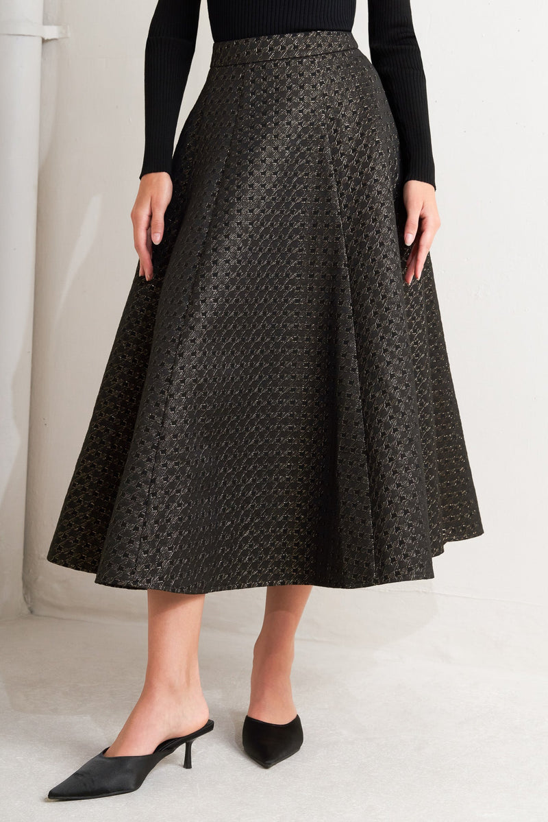 EVENING SCULPT METALLIC WOVEN CIRCLE SKIRT