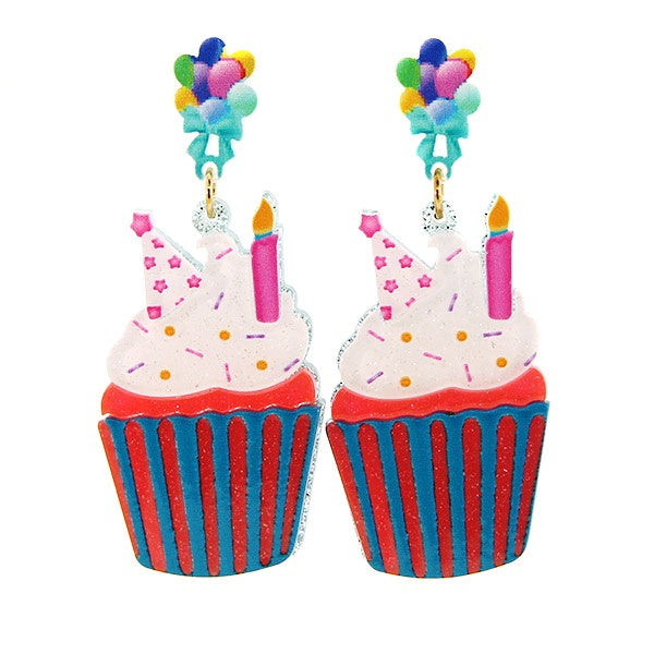 Glitter Resin Cupcake Multi-Colored Earrings – Post Stud Sweet Statement Drops