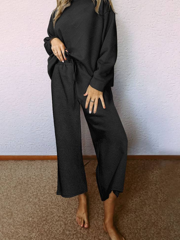 Texturizado 2 ud. Conjunto de ropa de estar por casa holgada NEGRO