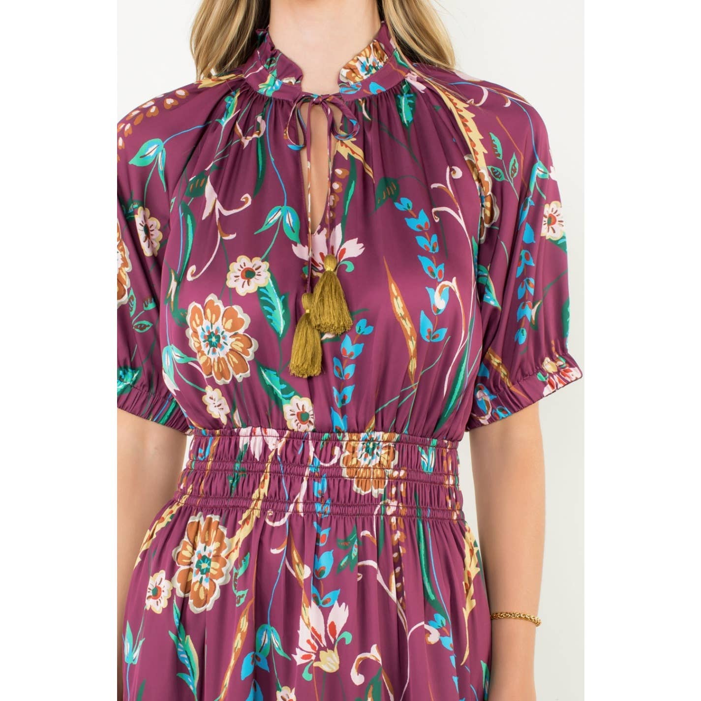 Presley-Smocked Waist Tassel Floral Maxi Dress