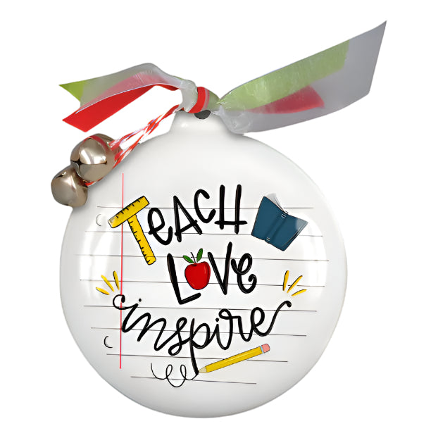 The Teach Love Inspire Ornament by Magnolia Lane is more than just an ornament; it's a statement piece. This decorative object is designed to be part of our home decor collection. It reflects our brand's commitment to enhance and compliment every occasion, from tailgating events to Christmas. Enjoy this addition to your home accents, as it brings a touch of warmth and charm to any setting.
