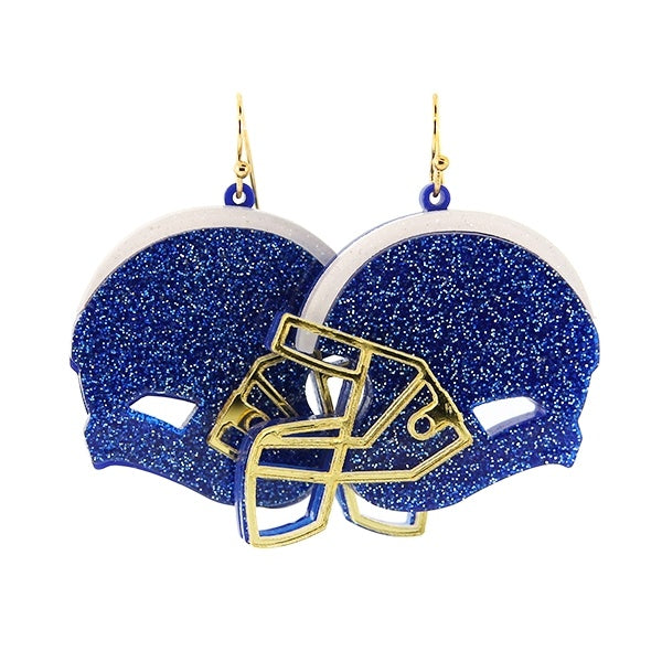 Glitter Resin Football Helmet Earrings – Blue Hook Dangle Gameday Shine