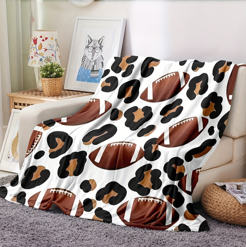 Wrap yourself in cozy style with the White Leopard & Football Print Flannel Blanket. Crafted from soft flannel, this blanket combines bold leopard spots with spirited football motifs, making it perfect for game days or relaxing at home. Its warm, plush texture offers comfort while adding a unique touch to your décor. Ideal for fans who want to stay snug and showcase their passion in a fashionable way.