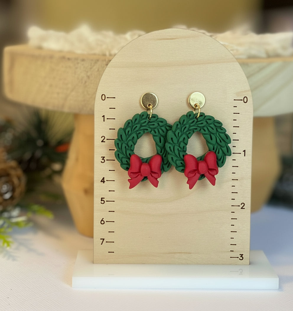 Holiday Wreath Clay Earrings | Christmas Earrings