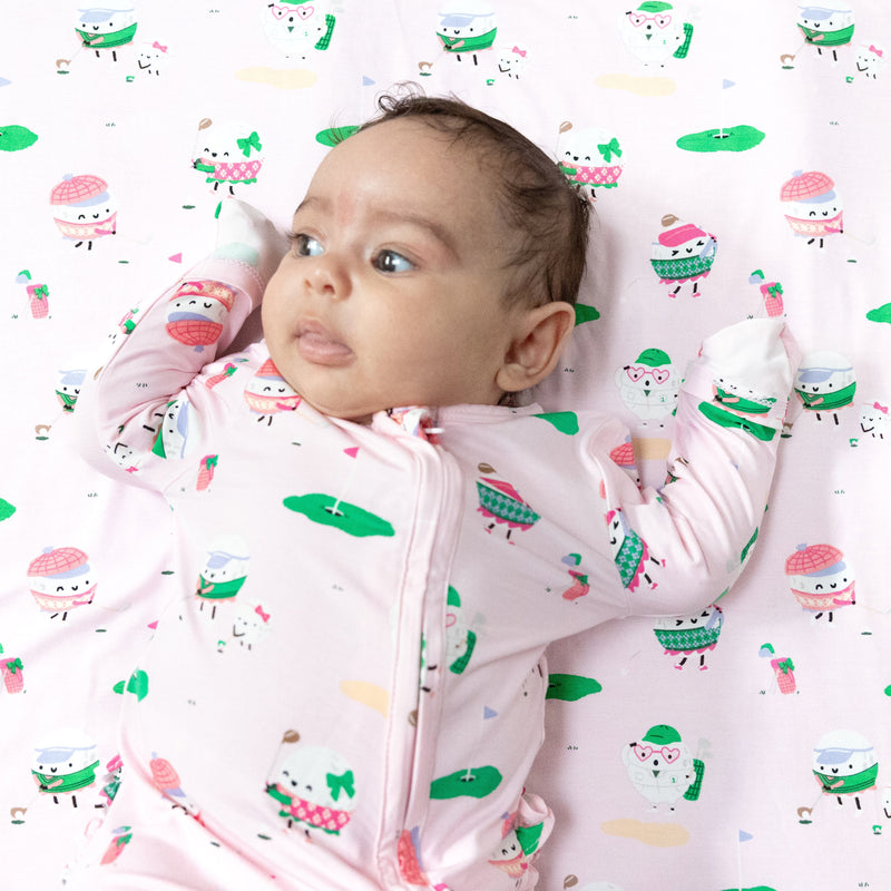 Golf Pros - Pink - 2 Way Zipper Ruffle Back Footie
