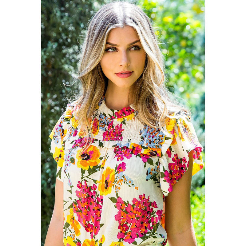 Nelma- Navy Floral Short Sleeve Scoop Neck Casual Blouse