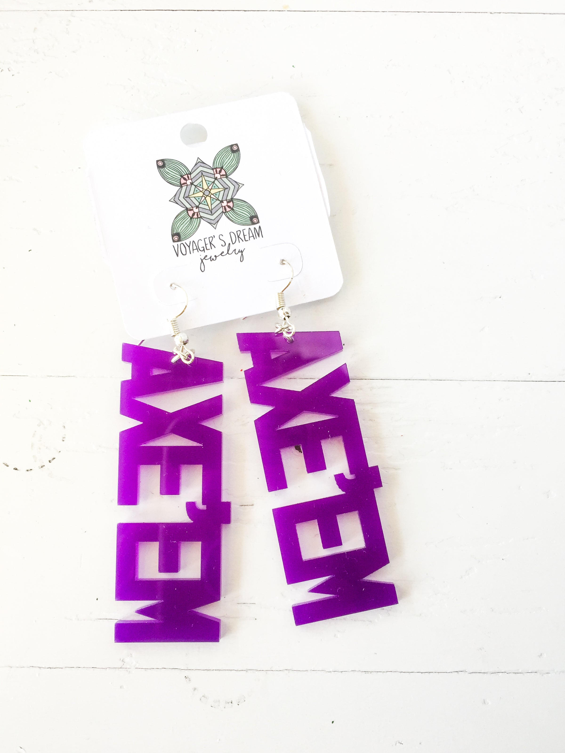 Make a splash at your tailgate party with these great purple GLITTER Acrylic Dangle Earrings!