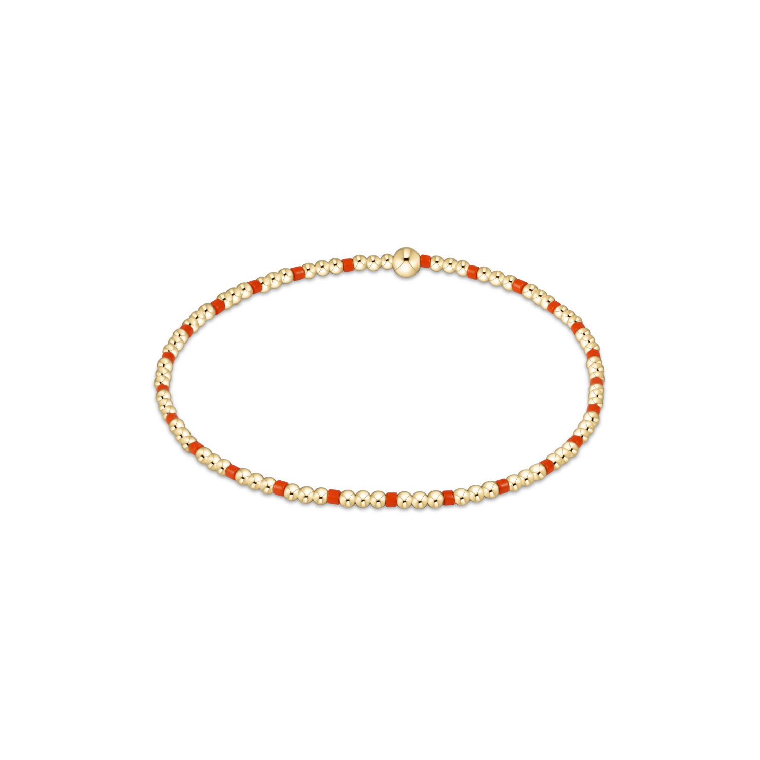 Get ready for game day with this sincerity pattern 4mm bead bracelet! This bracelet is a classic gold beaded bracelet with alternating bead sizes. The larger bead size is a 4mm and the smaller bright orange bead size is a 2mm.