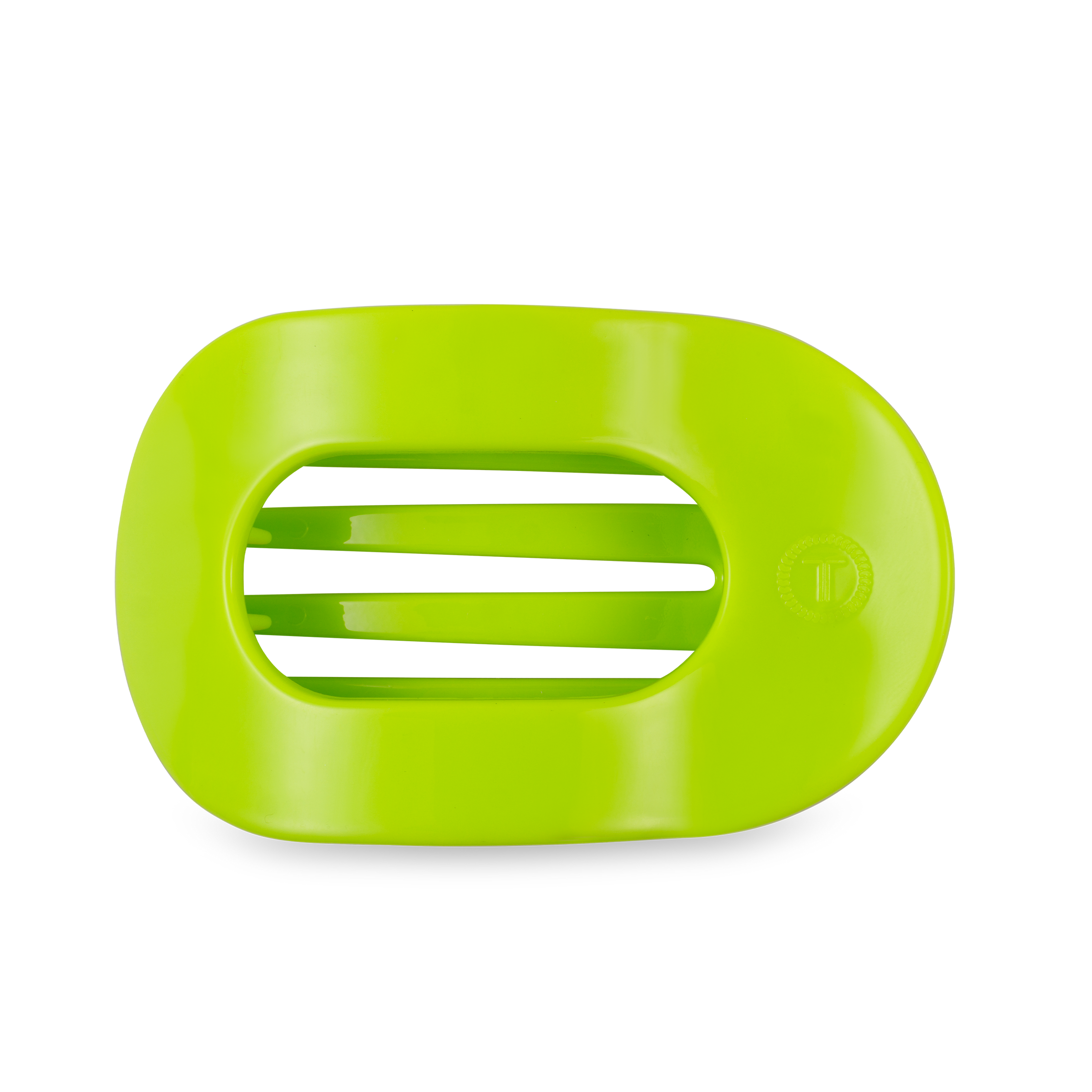 Lay flat and relax with the new TELETIES Summer Brights Large Flat Round Hair Clip in Green. This hair clip is designed to allow you to lay back flat, do yoga, or sit comfortably in a seat with a headrest, and it is made with the same material that is nearly unbreakable.