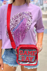 Show your team spirit with this Game Day Clear Bag, featuring a vibrant patch that says GAME DAY. This bag comes in red, blue, and orange. Its transparent design makes it easy to find your essentials quickly, perfect for stadiums or events with clear bag policies. Lightweight and stylish, it keeps you game-ready while supporting your favorite colors.