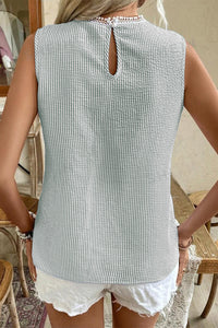 Claudia-Green Stripe Lace Patchwork Crew Neck Tank Top