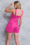 This MEET AT SUNSET WOVEN ROMPER is designed for ultimate comfort and style. It features a straight neckline, non-functional button down, self belt, front pockets, and back zipper closure for secure fit. The shoulder straps ensure it stays in place, even during the most rigorous activities. Enjoy the perfect blend of fashion and practicality with this romper.