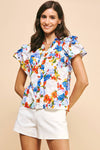 Playfully adorned with flouncy accents, this V-neck top boasts charming ruffles and abbreviated sleeves. Lovely model wears petite small.