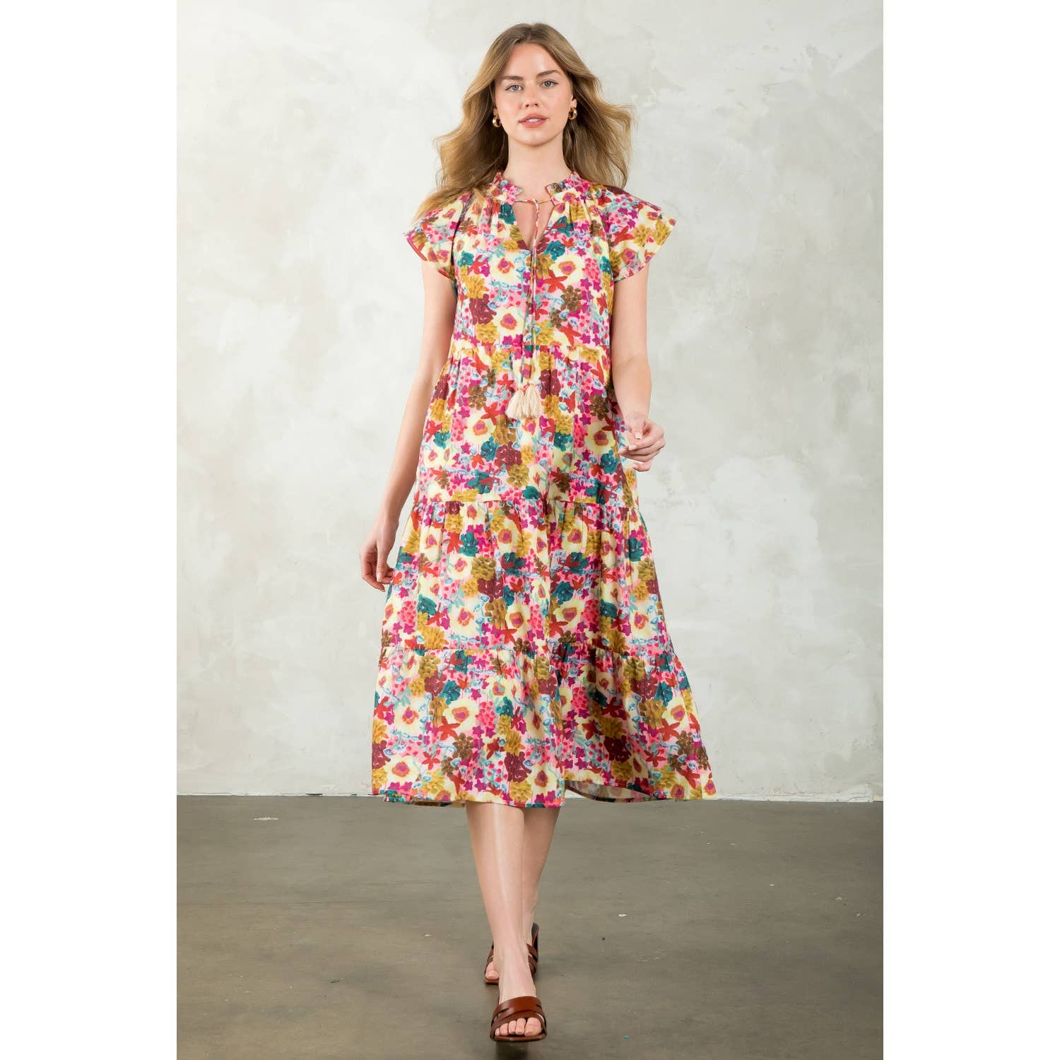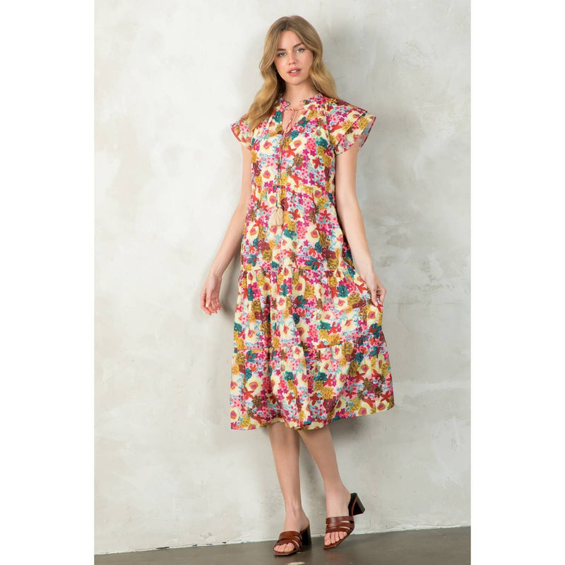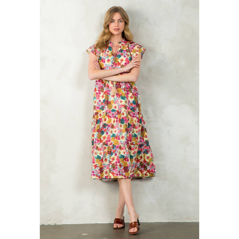 Tassel Tie Tiered Floral Dress – Boutique Women’s Vibrant Boho Dress