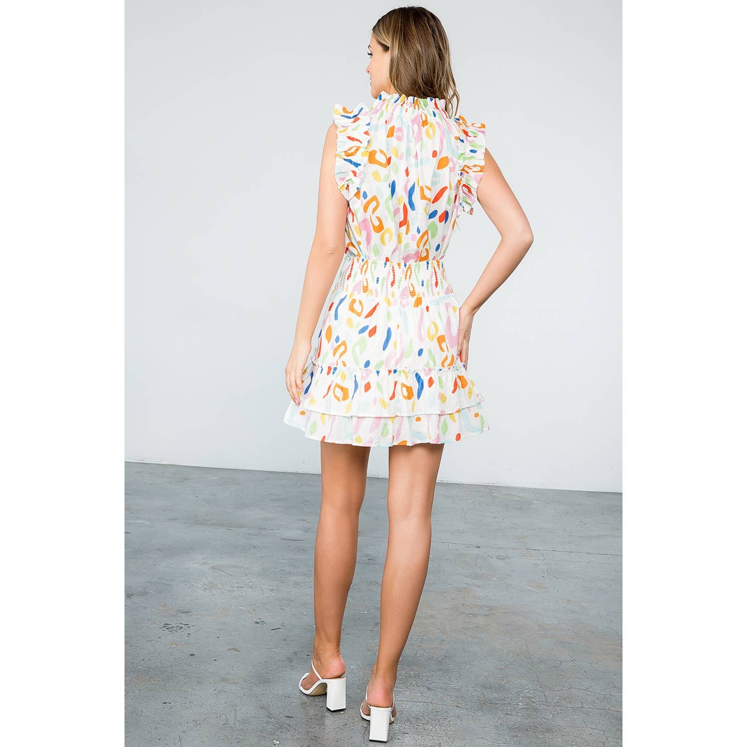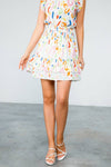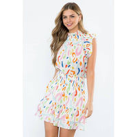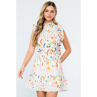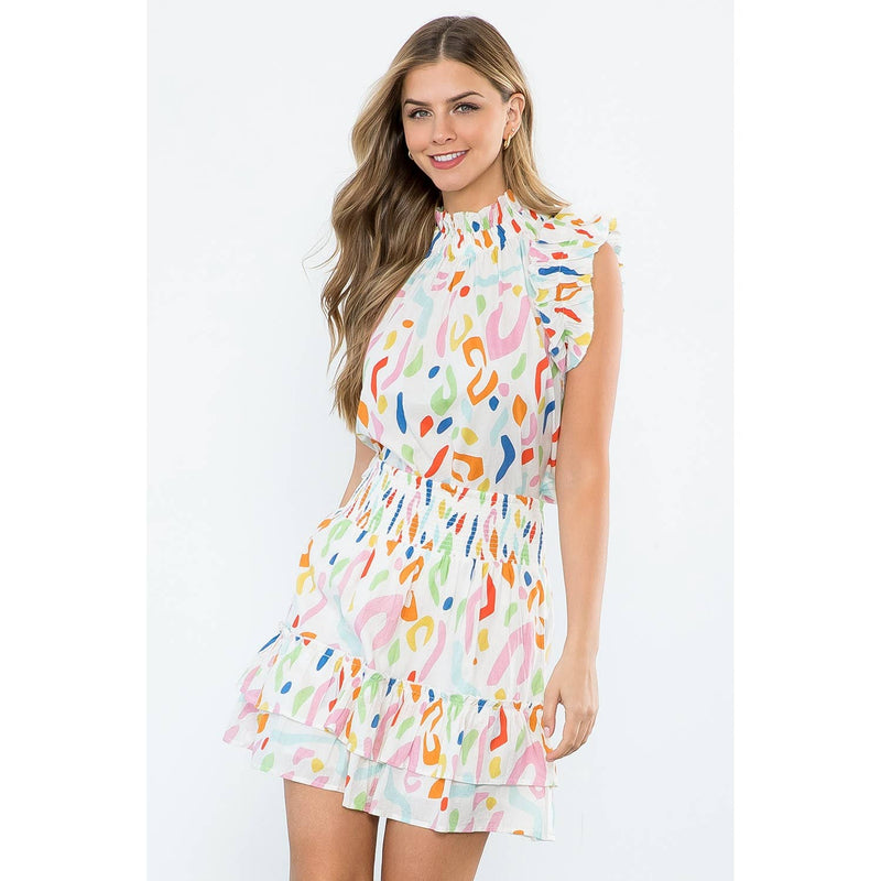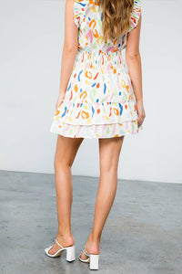 SAVANNAH- White Abstract Print Smocked Ruffle Skirt